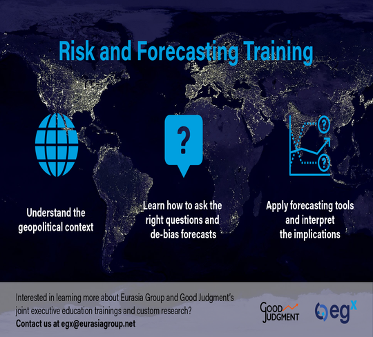 Interested in learning more about Eurasia Group and Good Judgment's joint executive education trainings and custom research? Contact us at [email protected].