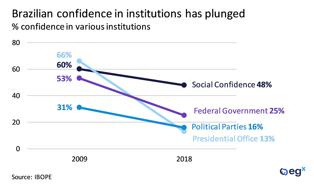 Despite his market-friendly orientation, Bolsonaro faces a limited window of time to enact these reforms. His sons' involvement in emerging corruption scandals also poses an acute risk to his public support, particularly given his anti-corruption platform and the environment of widespread distrust in the political elite.