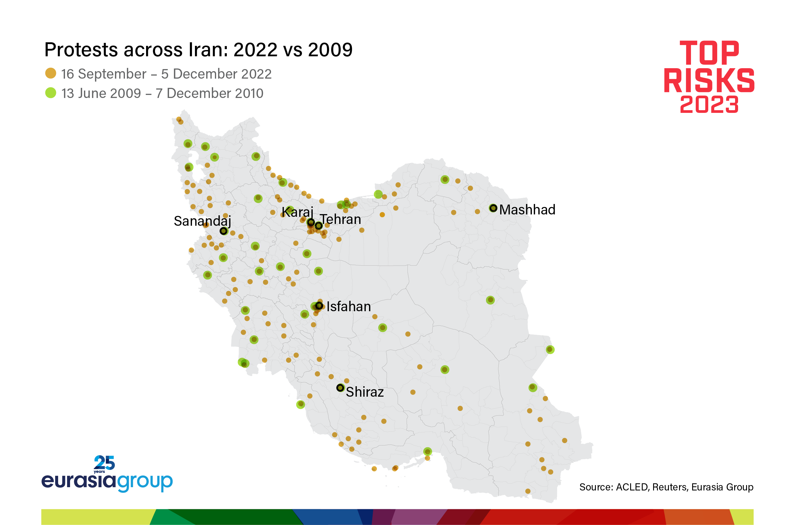 These three factors—domestic repression, nuclear advances, and involvement in the Ukraine war—all combine to increase the risk of confrontation with Iran this year.